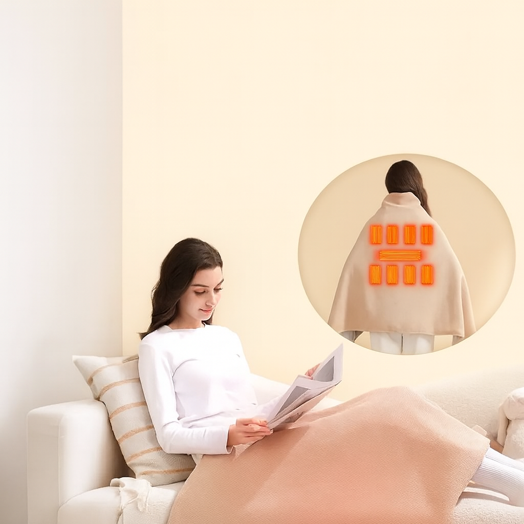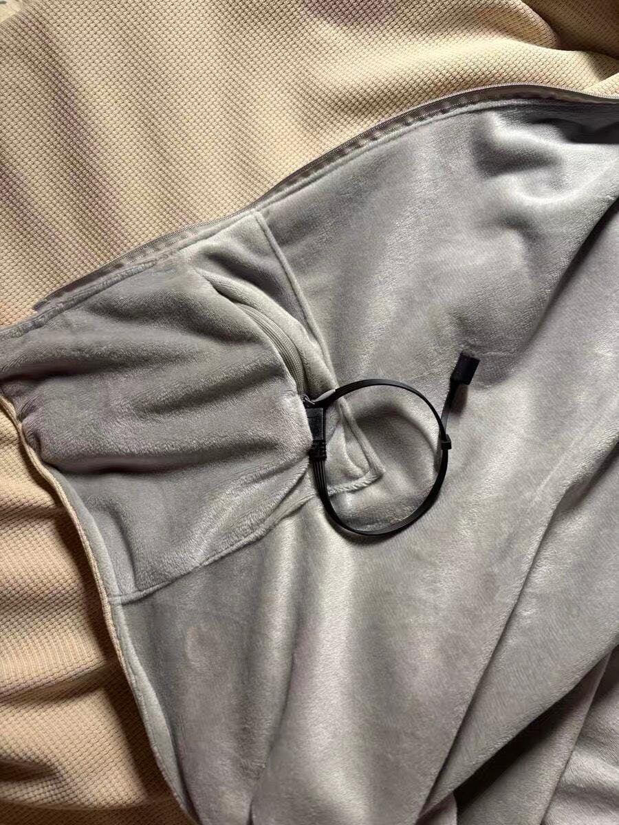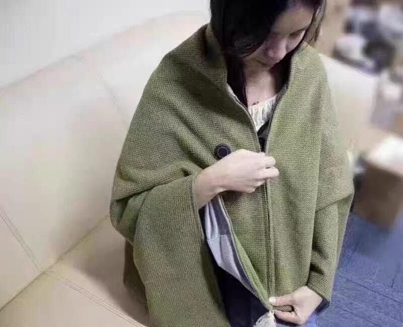 4. 便利なジッパーデザイン:しっかりとしたジッパーがポータブル電気毛布をしっかりと固定し、ハンズフリーで快適に暖かさを保ちます。頻繁に調整する必要はありません。 5. 持ち運びやすく軽量:忙しいライフスタイルに合わせて設計されたこの軽量USBオープンブランケット/ショールは、バッグに簡単に折りたたむことができ、旅行、キャンプ、または自宅で快適に使用でき、いつでも手元に暖かさをもたらします。