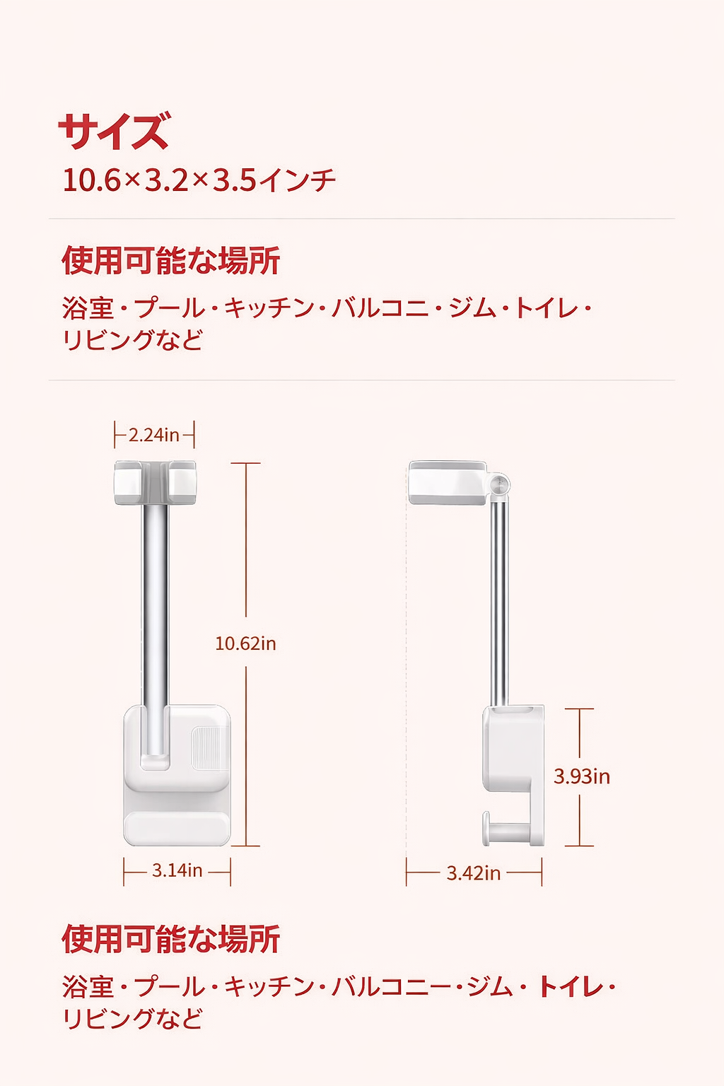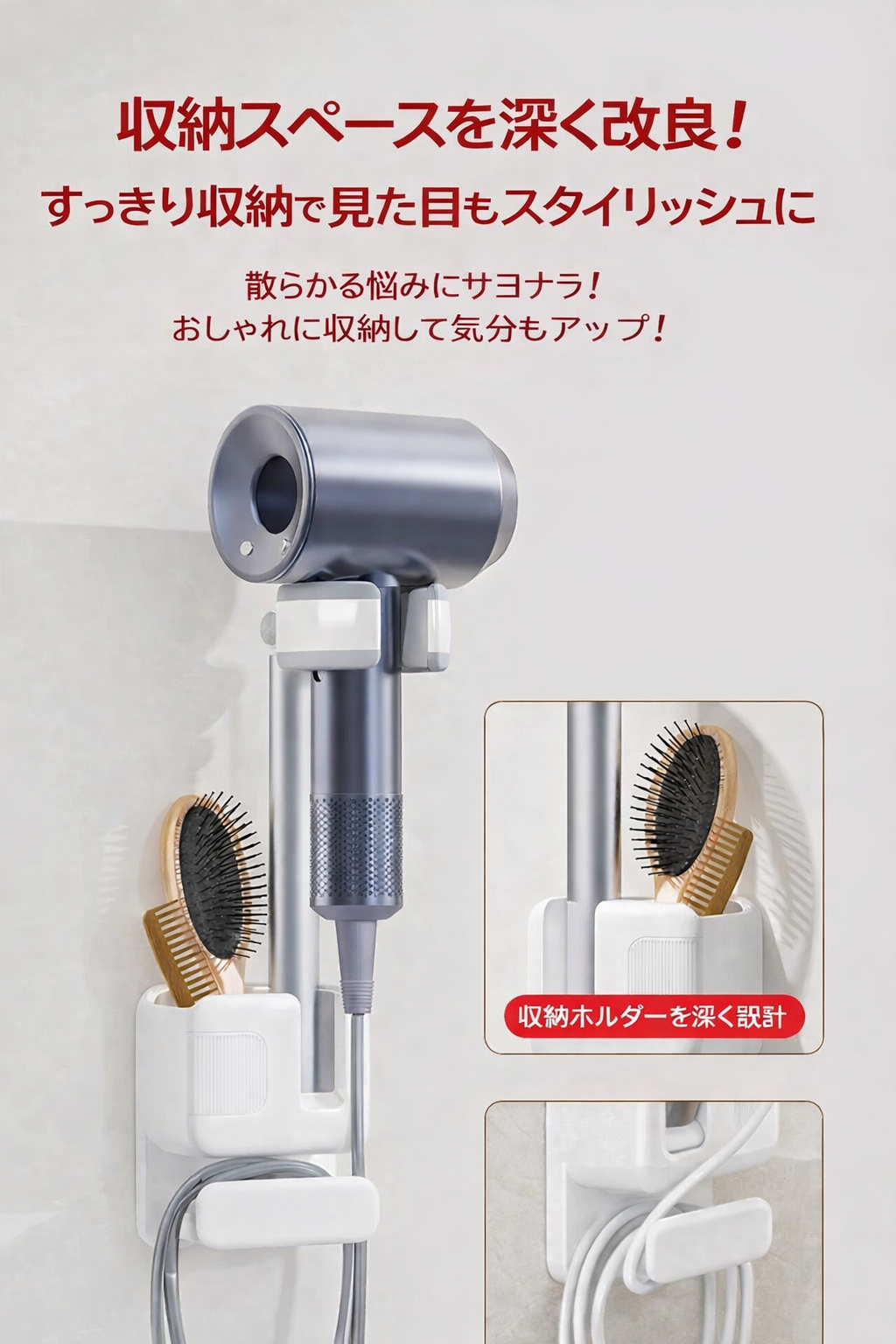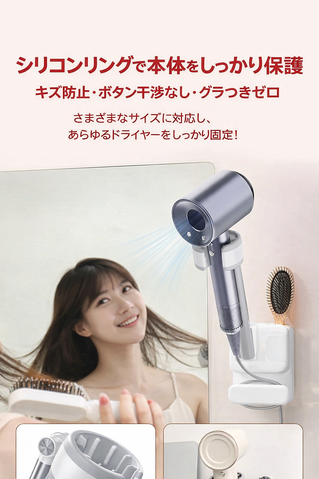 衝撃吸収性と摩擦グリップで、ドライヤーをしっかりと固定。