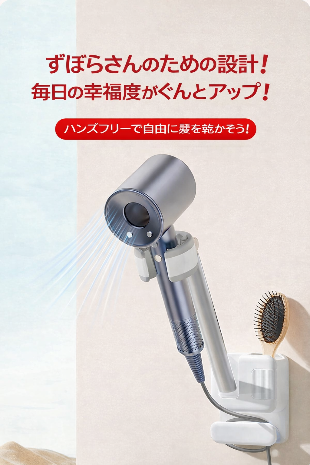 ✔ 両手が自由 → ブラッシング・ヘアオイル・前髪セットが同時にできる