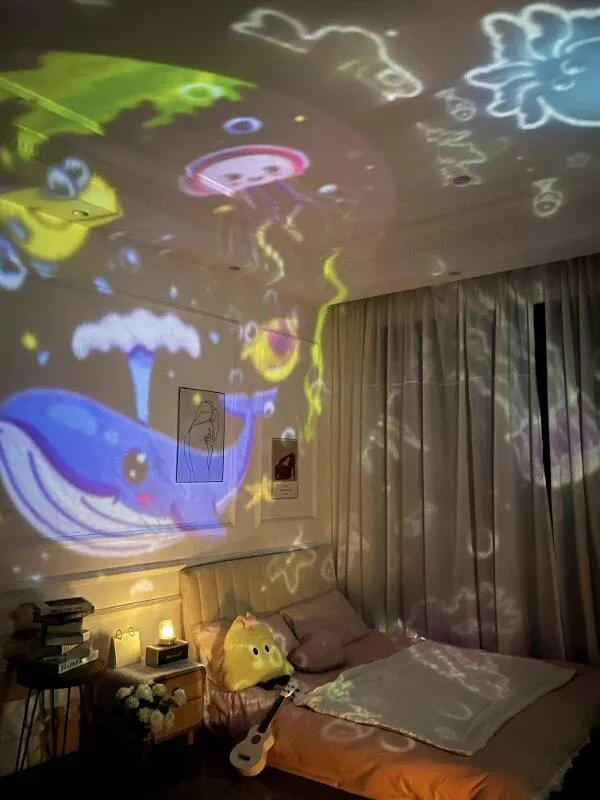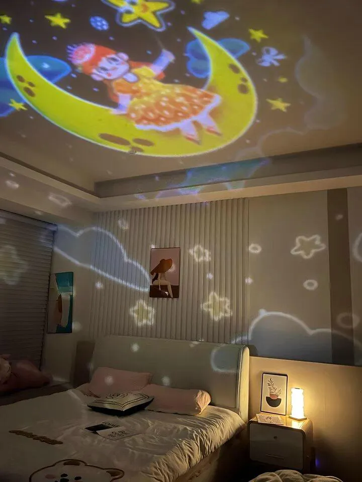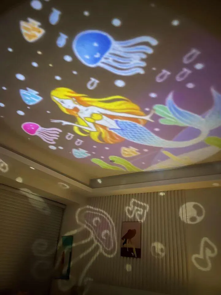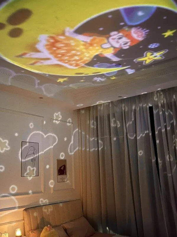 この回転プロジェクター、最高!娘に子供の日のプレゼントとしてあげたら、すごく喜んでくれました。毎晩寝る前に電源を入れると、色々なアニメの映像が映し出されて、娘の部屋がまるでおとぎ話の世界に変身します。娘もすごく楽しんでいたので、本当におすすめです!